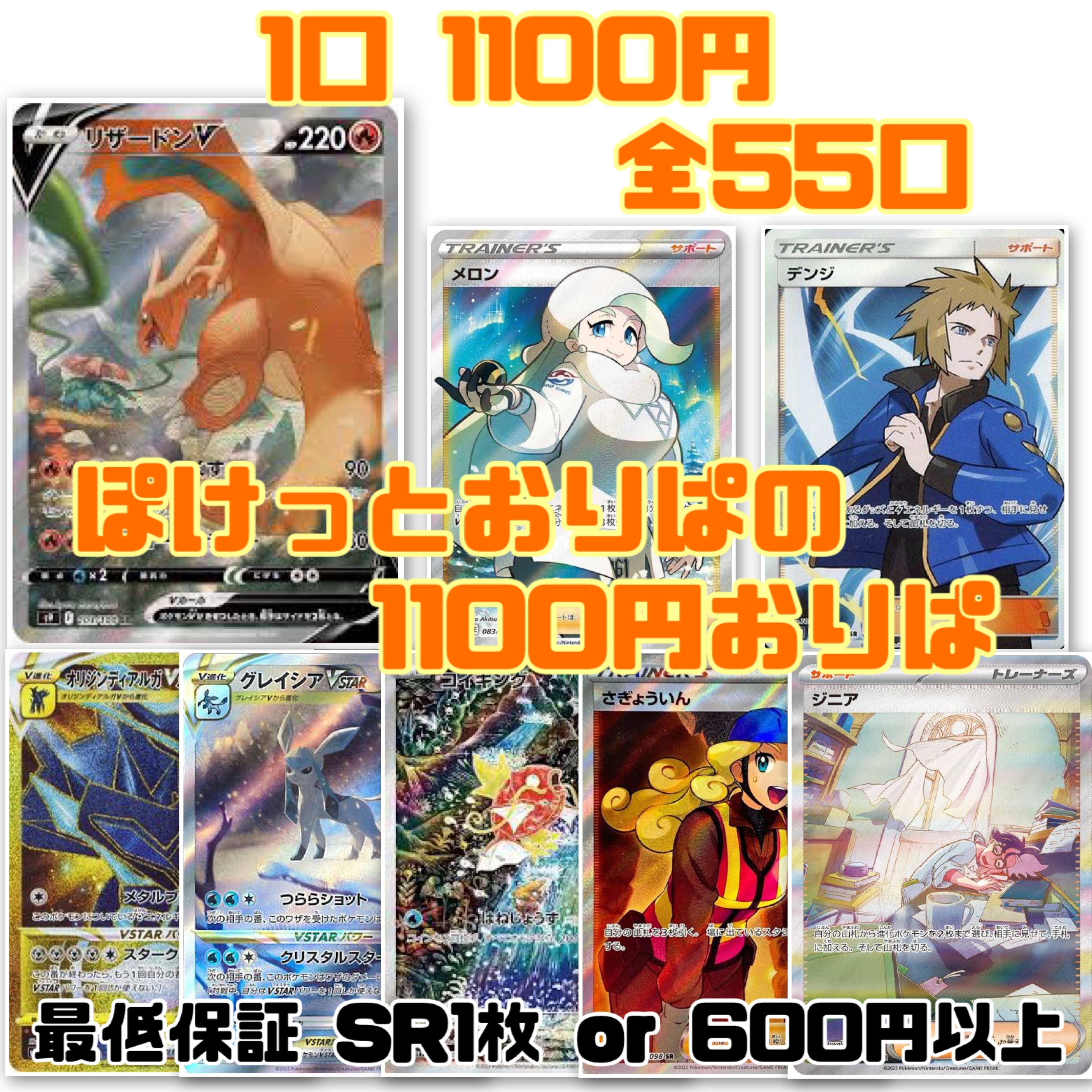 ポケモンカード1口1100円のオリジナルパックになります。